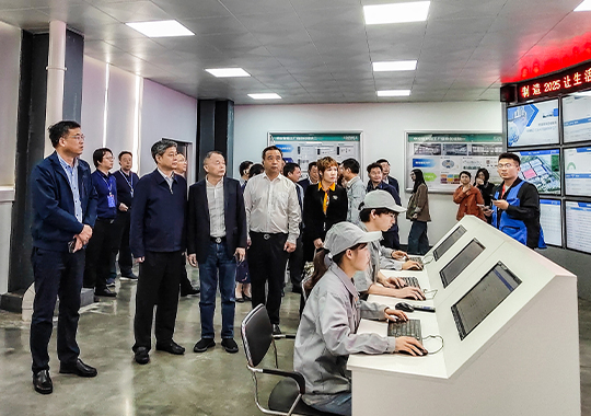 图为邵阳市委书记严华陪同院士、专家一行莅临JN江南体育官方网站 智能制造(邵阳)有限公司参观调研指导工作。